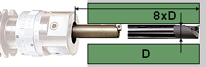 With variable length adjustment of the boring bar up to 8 x D ensures optimum rigidity for all applications. Boring bar from 8 mm upwards are supplied with coolant bores as standard.