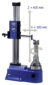 The stainless steel spindle is supported in a high precision bearing, it can be secured at any angle of rotation. With the X for diameter 300 mm and Z traverse of 400 mm enable also large tools to be adjusted and measured.