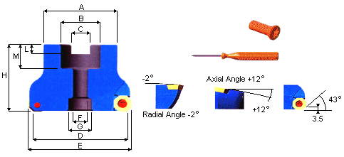| Art. Nr | Dia. | Z | A | B | C | E | F | G | H | L | M | Insert |